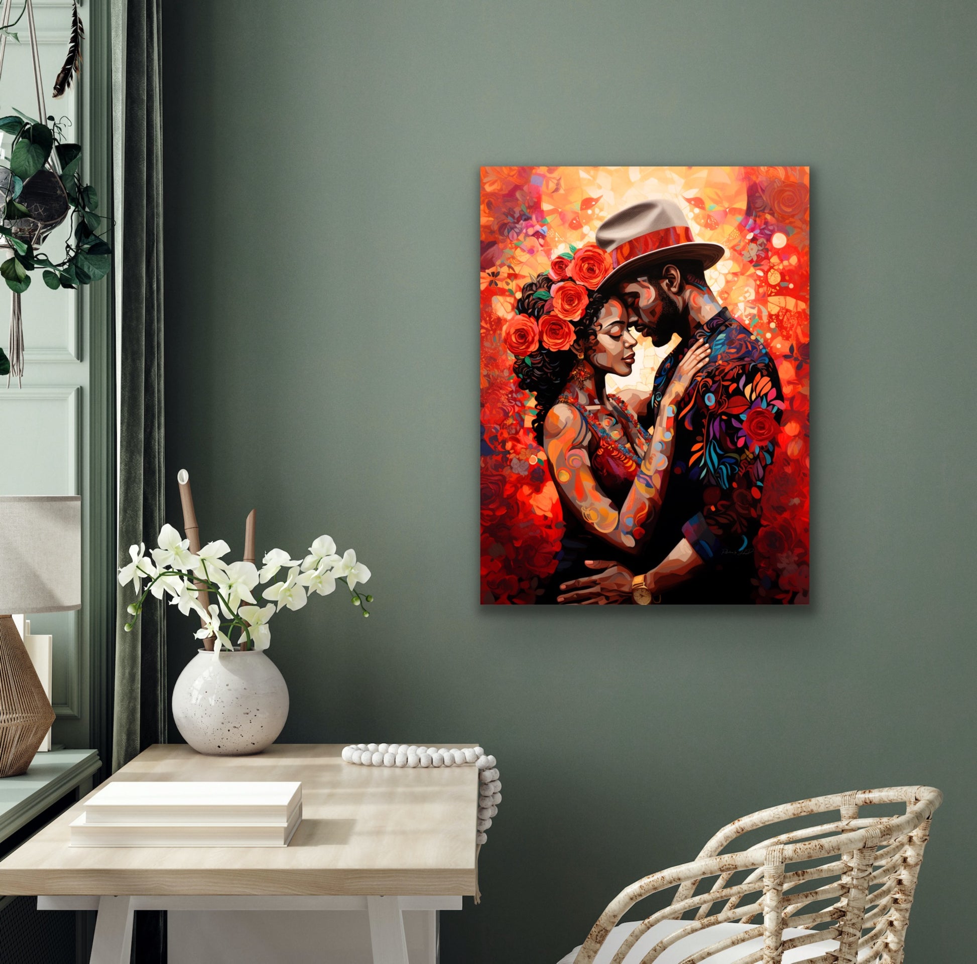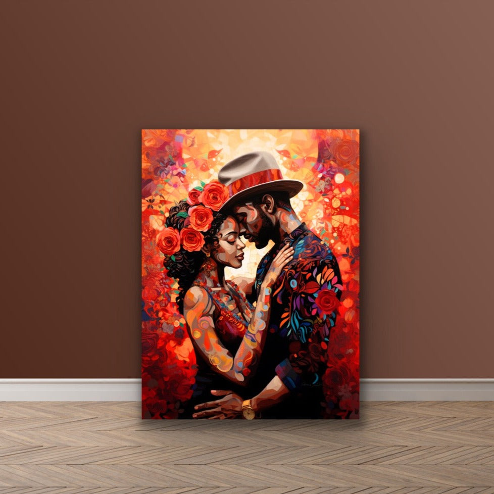 A Blooming Love | Black Love | Stretched Canvas Print Wall Art | Black Art | African American Art