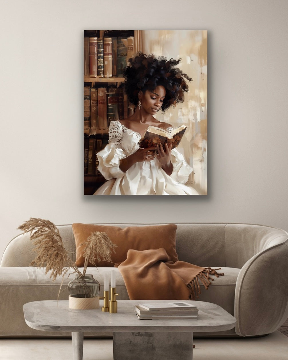 Enhance the ambiance of your room or office with our exquisite canvas wall art, aptly titled "A Great Read." This captivating piece is sure to infuse your space with a touch of elegance.
