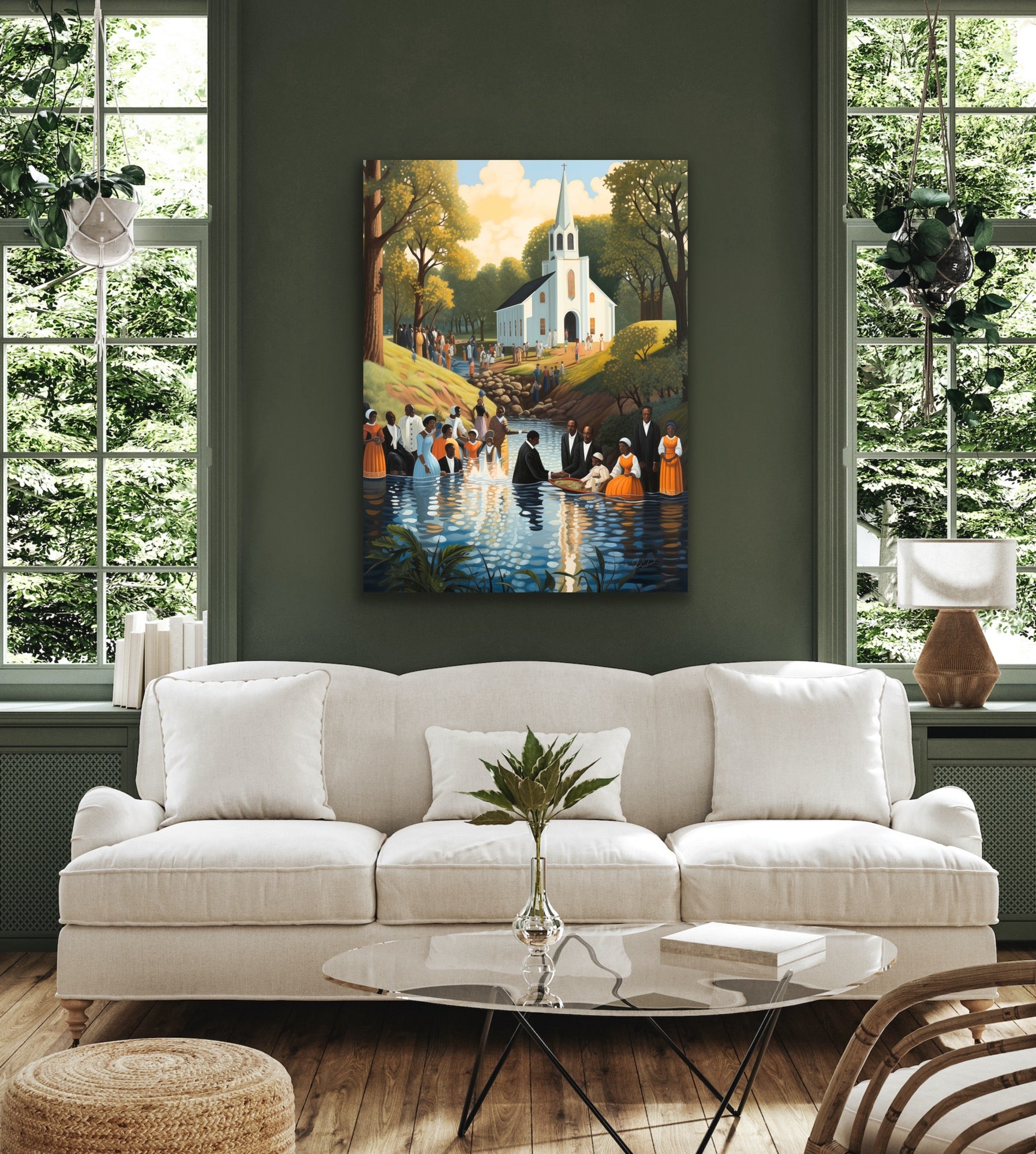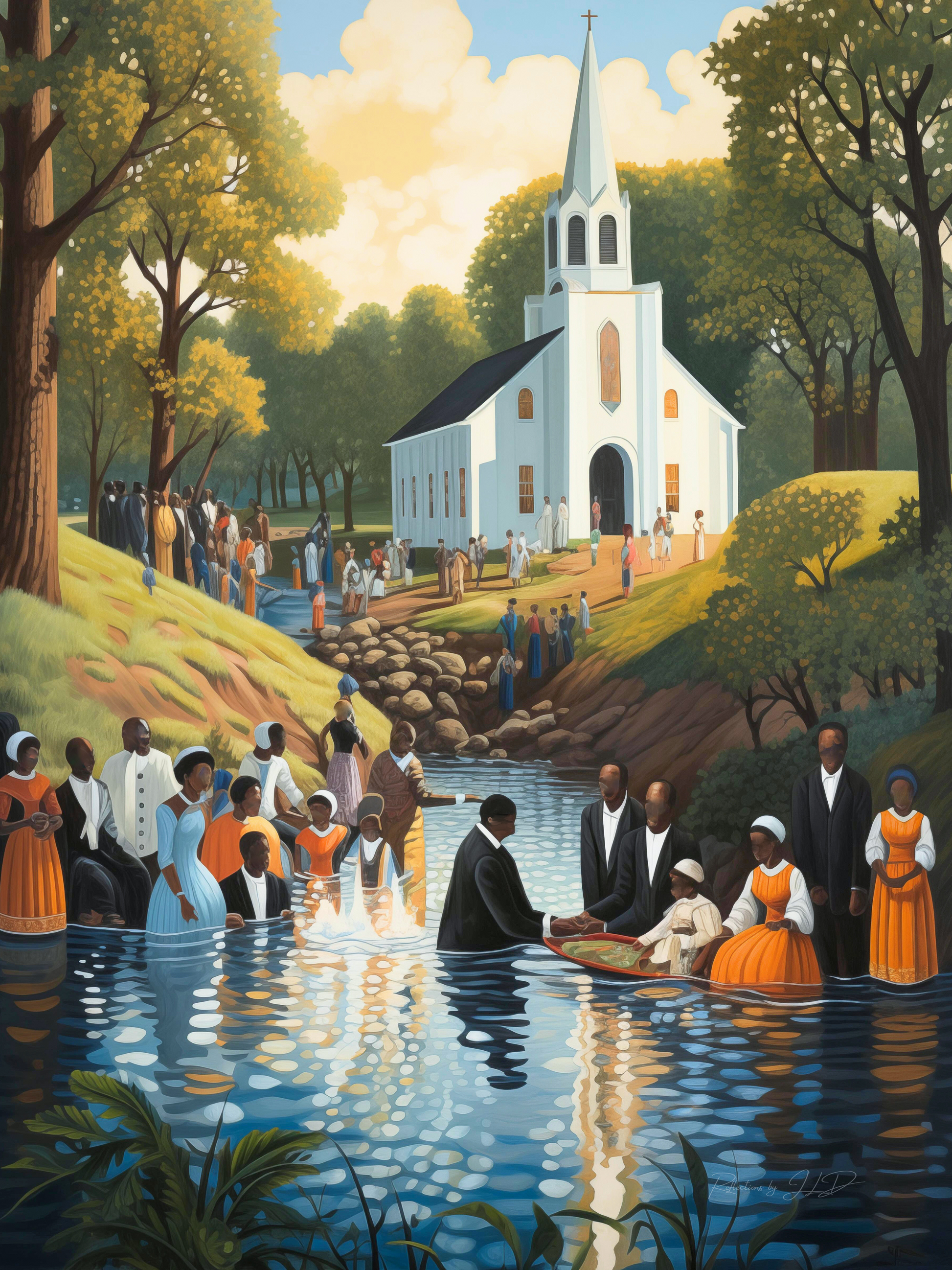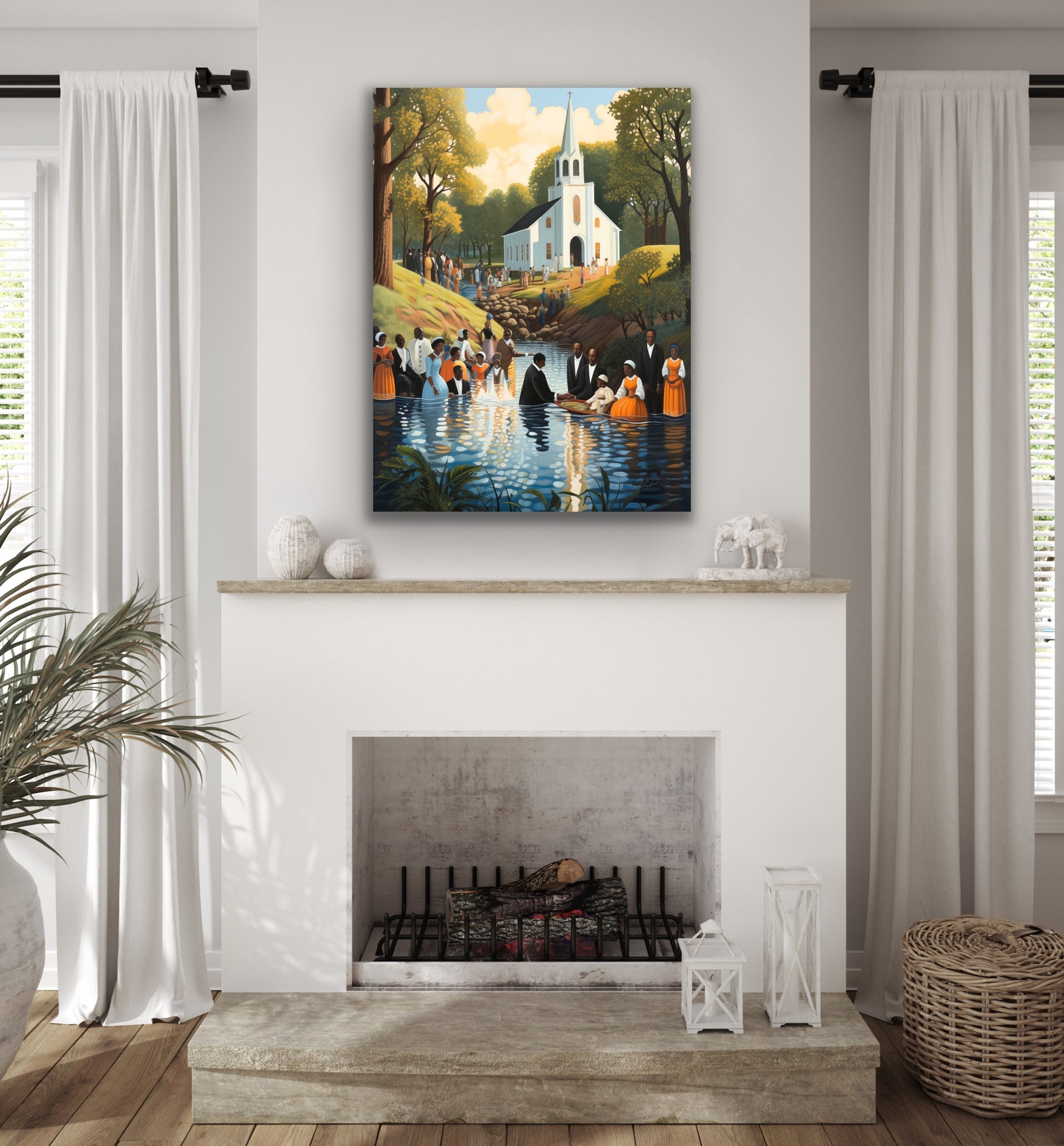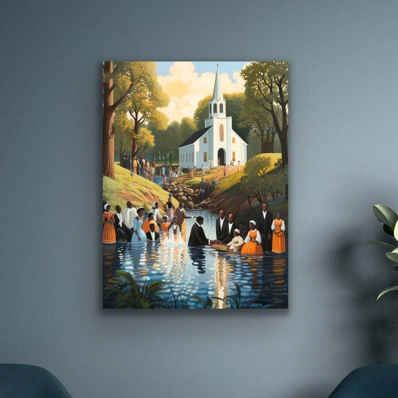 Down To The Water | Stretched Canvas Print Wall Art | Black Art | African American Art | Black Church Art