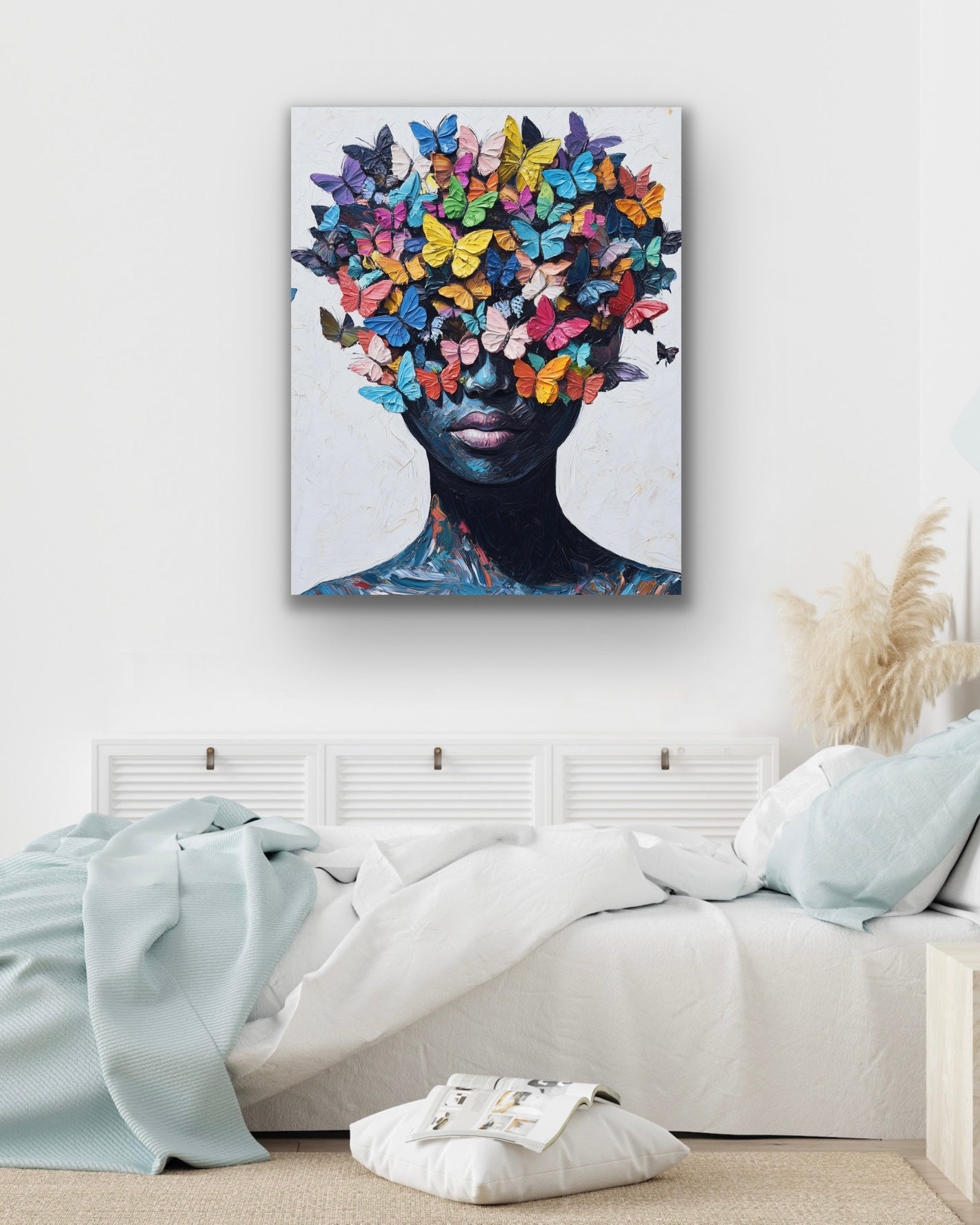 Enhance the ambiance of your room or office with our exquisite canvas wall art, aptly titled "The Face of Butterflies." This captivating piece is sure to infuse your space with a touch of elegance.