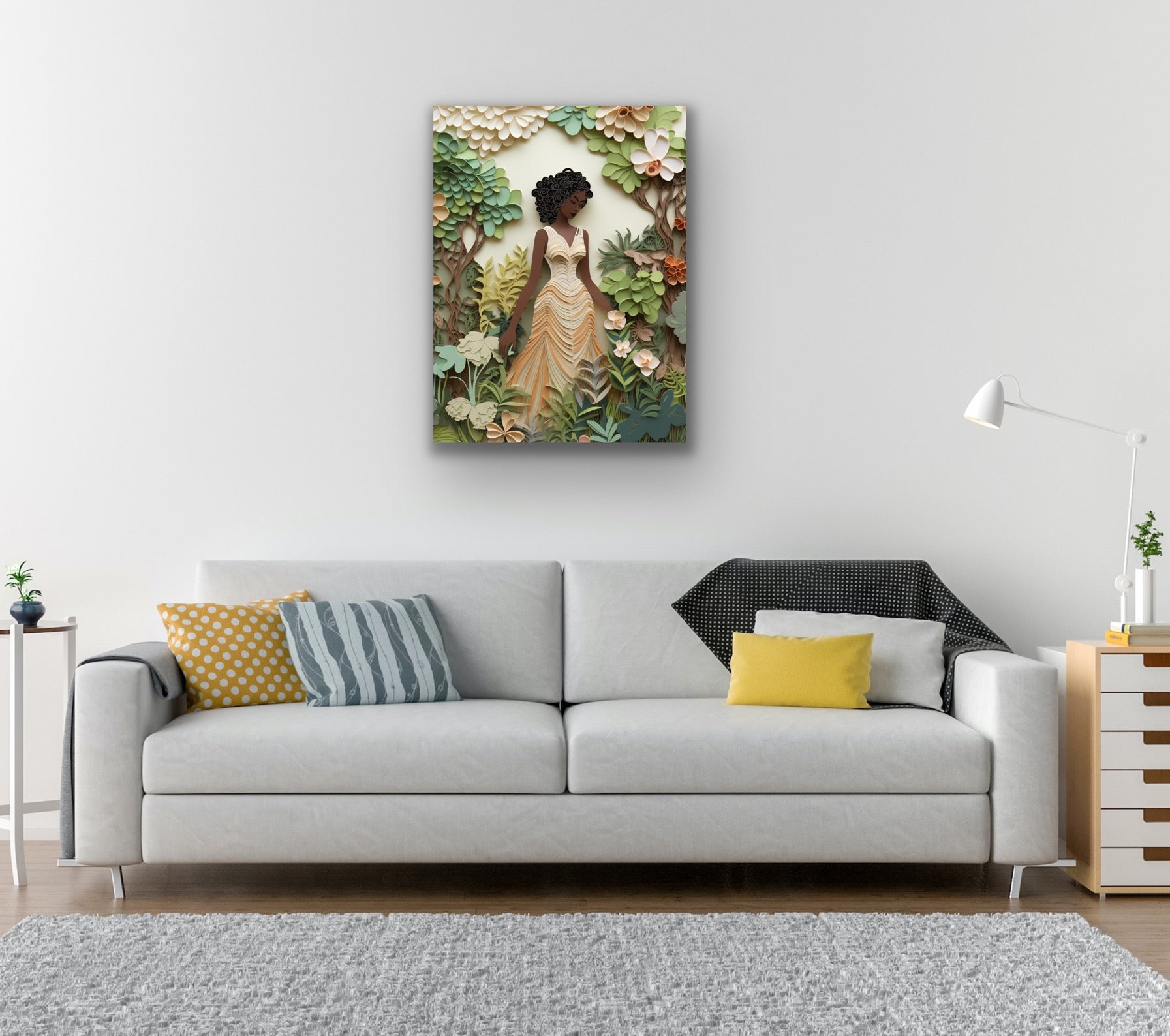 Lady of The Garden | Stretched Canvas Print Wall Art | Black Art | African American Art