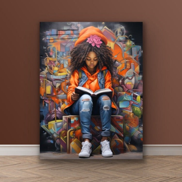 My Happy Place | Reading Art | Stretched Canvas Print Wall Art | Black Art | African American Art