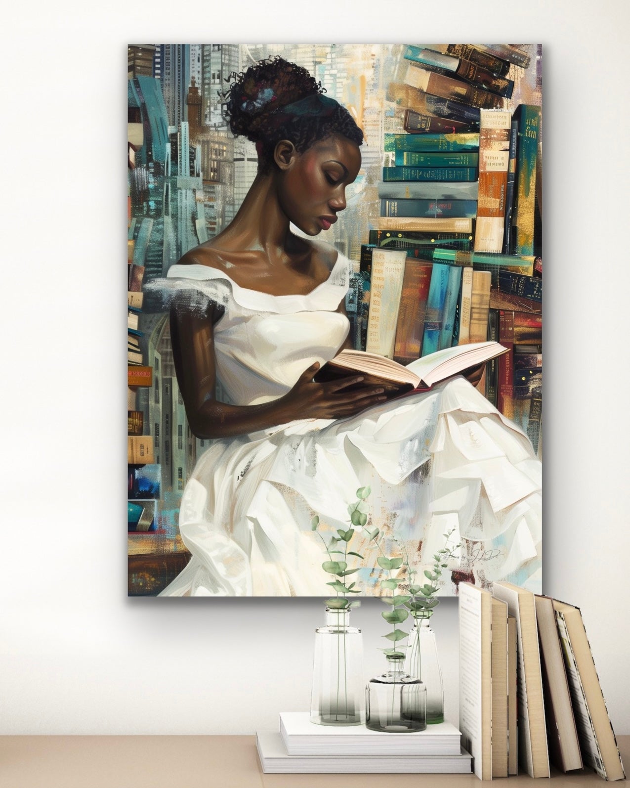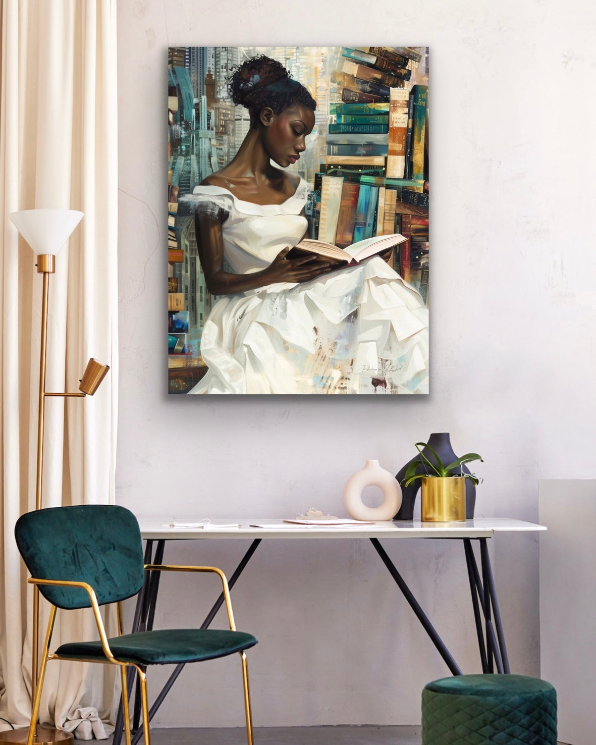 Enhance the ambiance of your room or office with our exquisite canvas wall art, aptly titled "A Great Read." This captivating piece is sure to infuse your space with a touch of elegance.