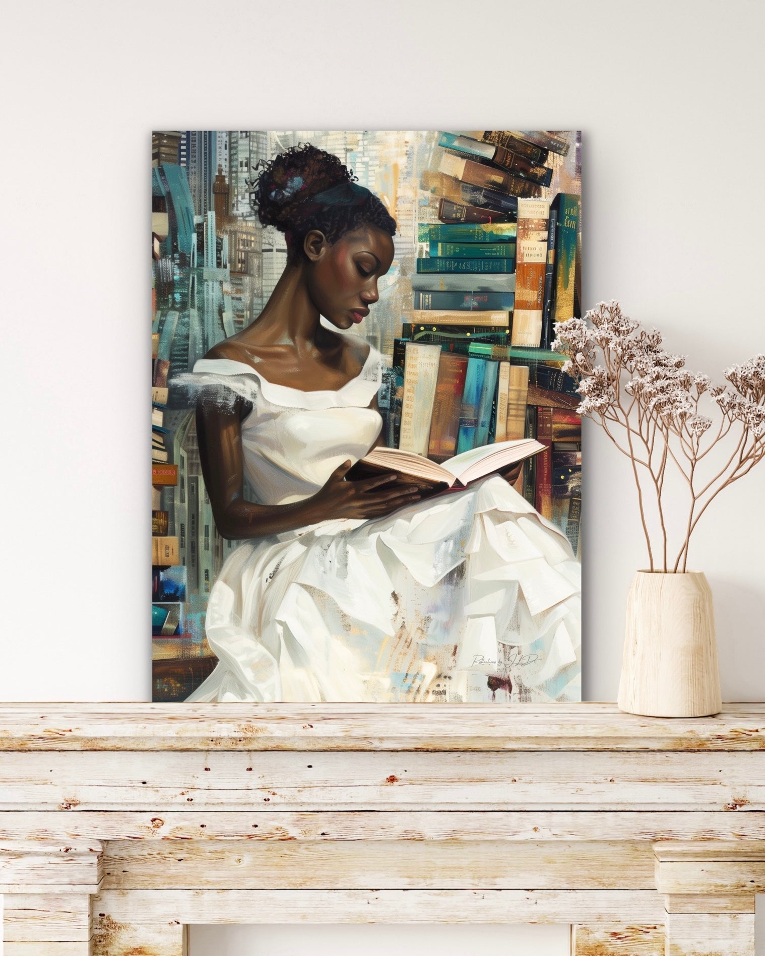 My Library Getaway | Reading Art | Stretched Canvas Print Wall Art | Black Art | African American Art