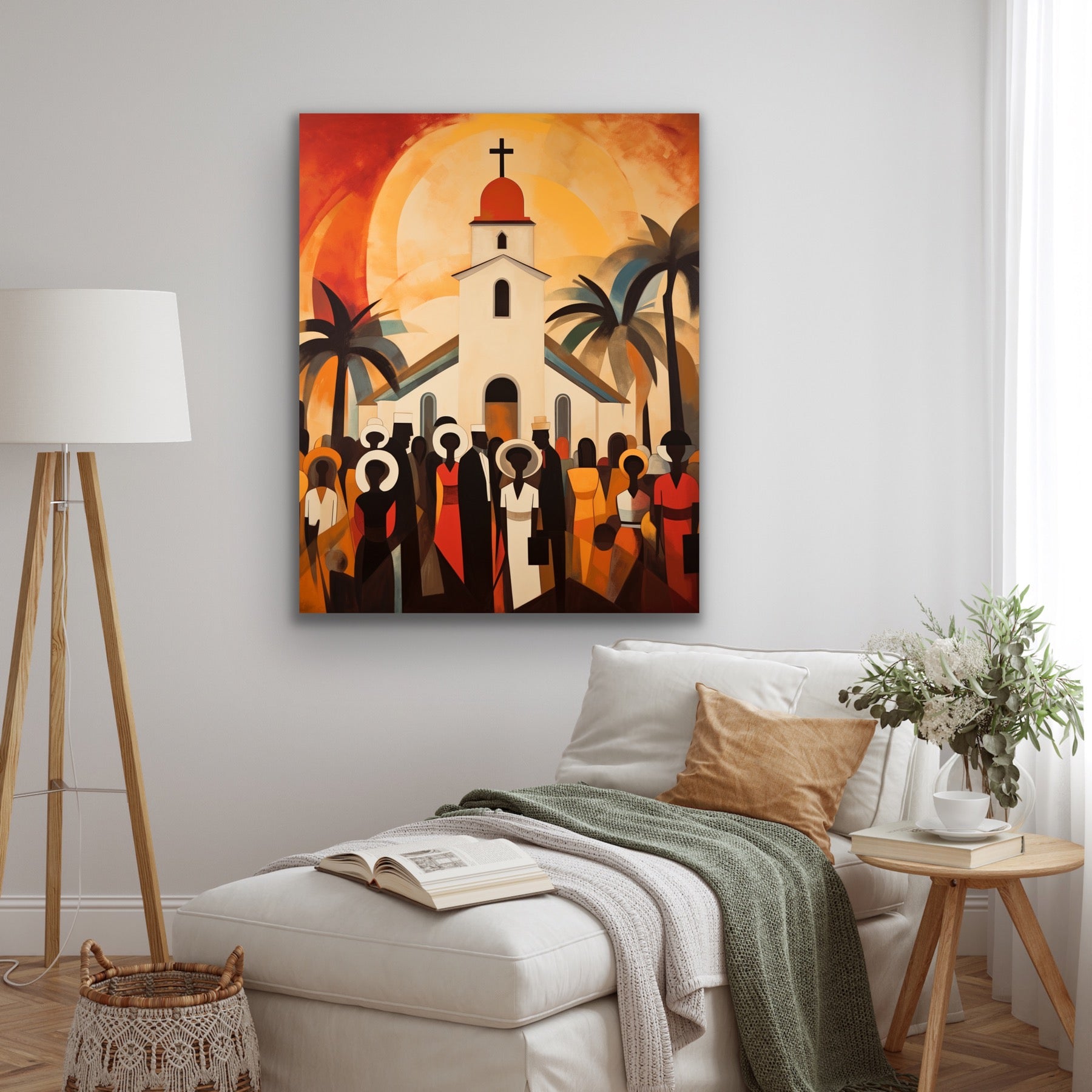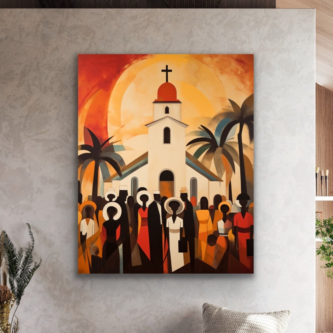 The Fellowship | Stretched Canvas Print Wall Art | Black Art | African American Art | Black Church Art