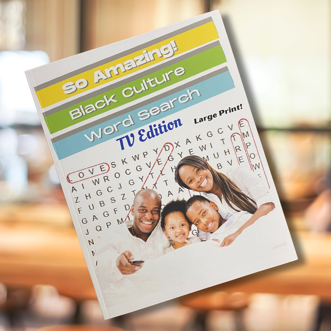 So Amazing! Black Culture returns with another great word search book. This time it is the TV edition. We are covering all things TV. From our favorite sitcoms, dramas, soaps, reality shows, actors, actresses to news as well as sports personalities and more! Get ready to take a trip down memory lane as we revisit some of our most iconic shows from the past. You will also be able to explore many of today’s favorite shows and people. Get a fresh highlighter and be prepared for hours of smiles and fun! It’s So Amazing!
